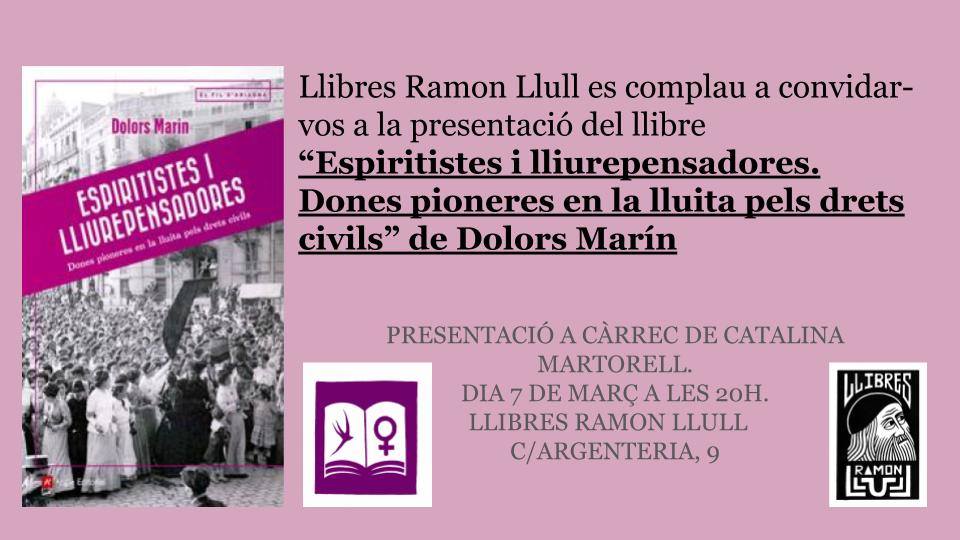 Presentació del llibre “Espiritistes i lliurepensadores” a càrrec de Dolors Marín i Catalina Martorell.