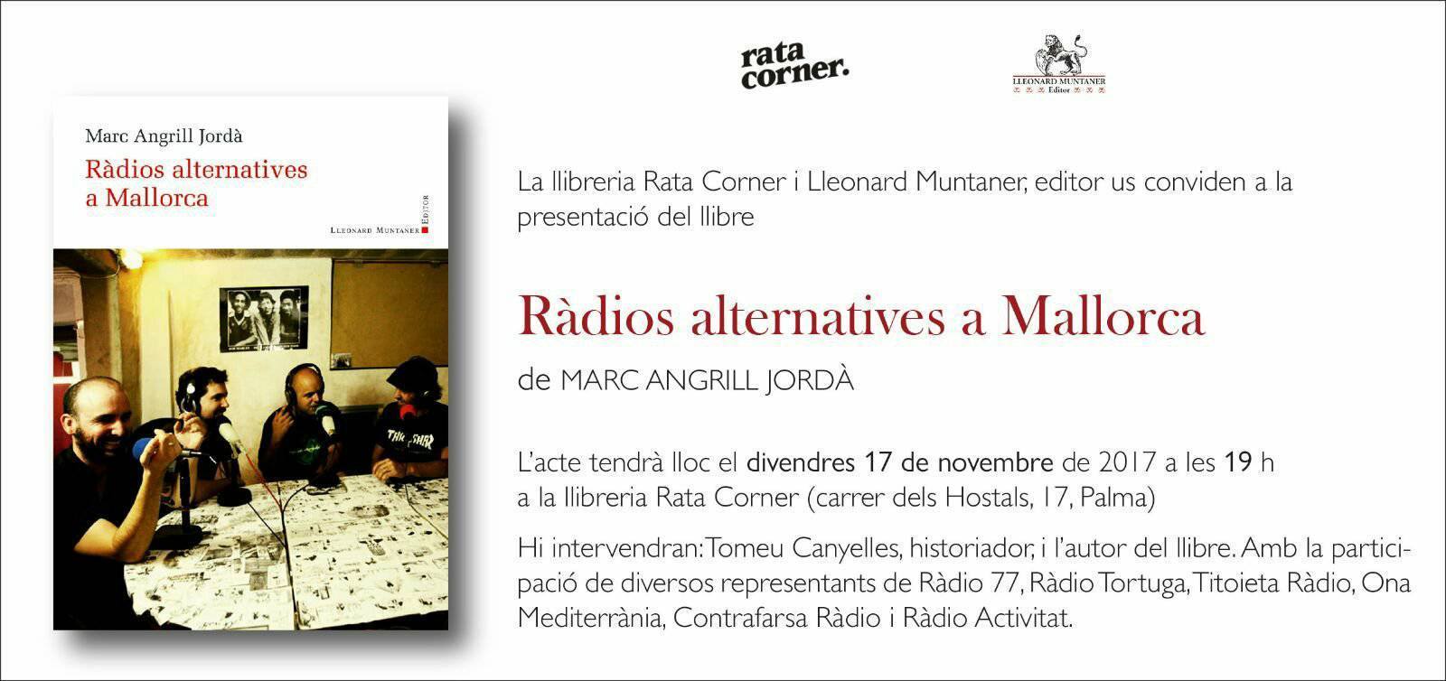 Estam molt contents de convidar-vos a la presentació de “Ràdios alternatives de Mallorca” de Marc Angrill Jordà (editat per Lleonard Muntaner-Editor).